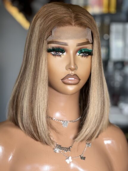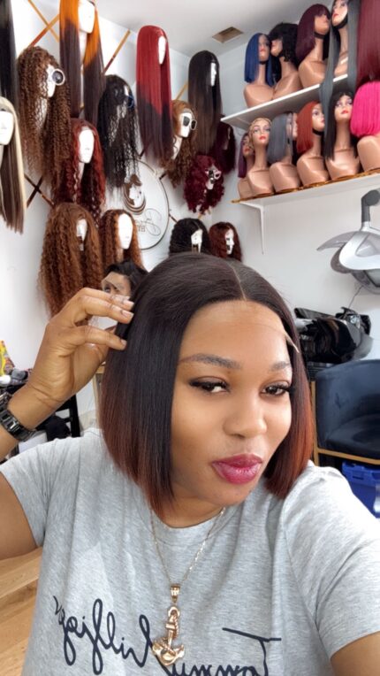 Vietnamese Raw hair bundles are used to create this effortless beauty paired with  5×5 Lace-cut layers . Gluless handmade Machine Wigs